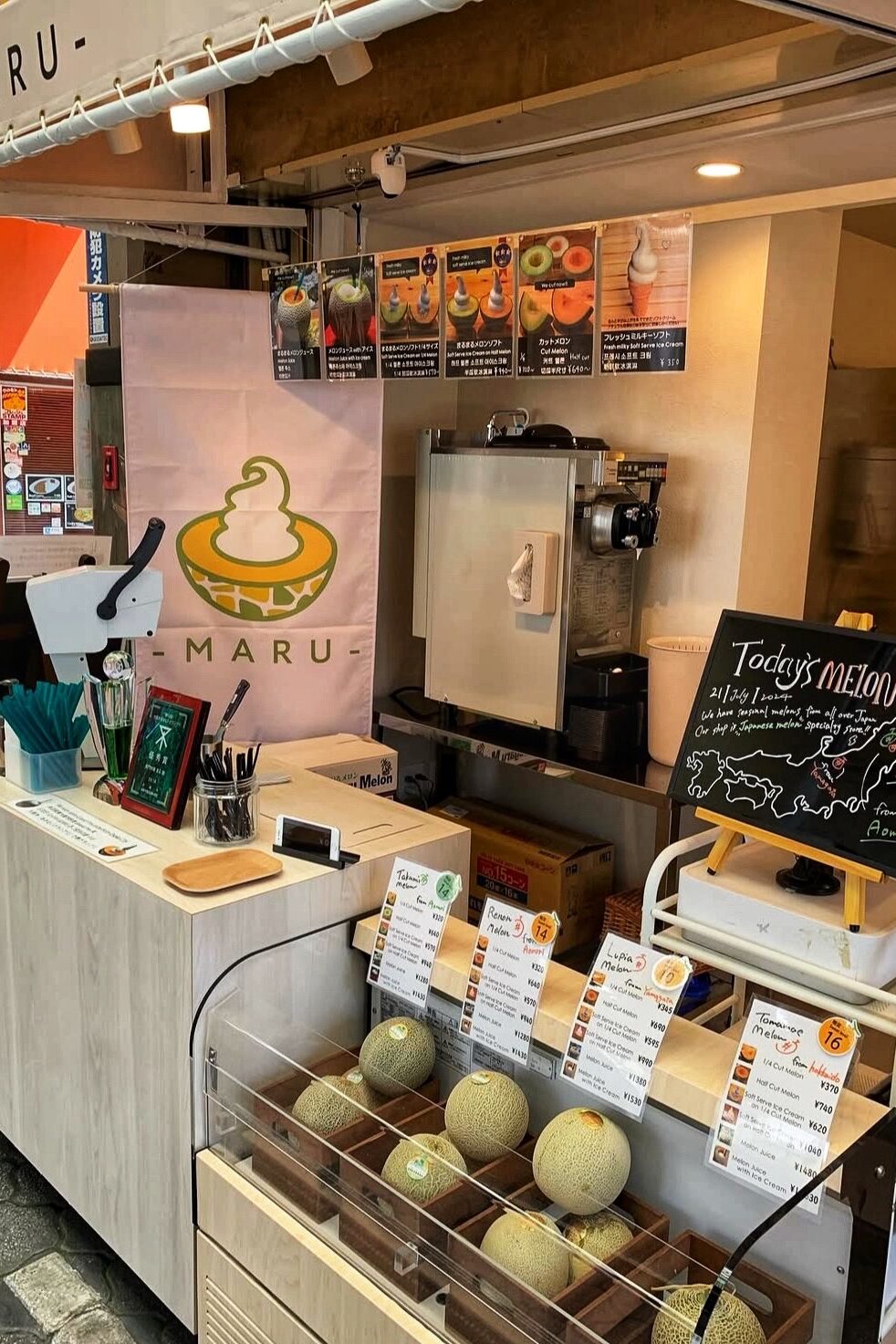 Pépite sucrée au cœur du « Garde-Manger d’Osaka », c’est dans l’effervescence du marché de Kuromon que Maru révolutionne l’art du dessert avec son melon glacé devenu la sensation du marché.