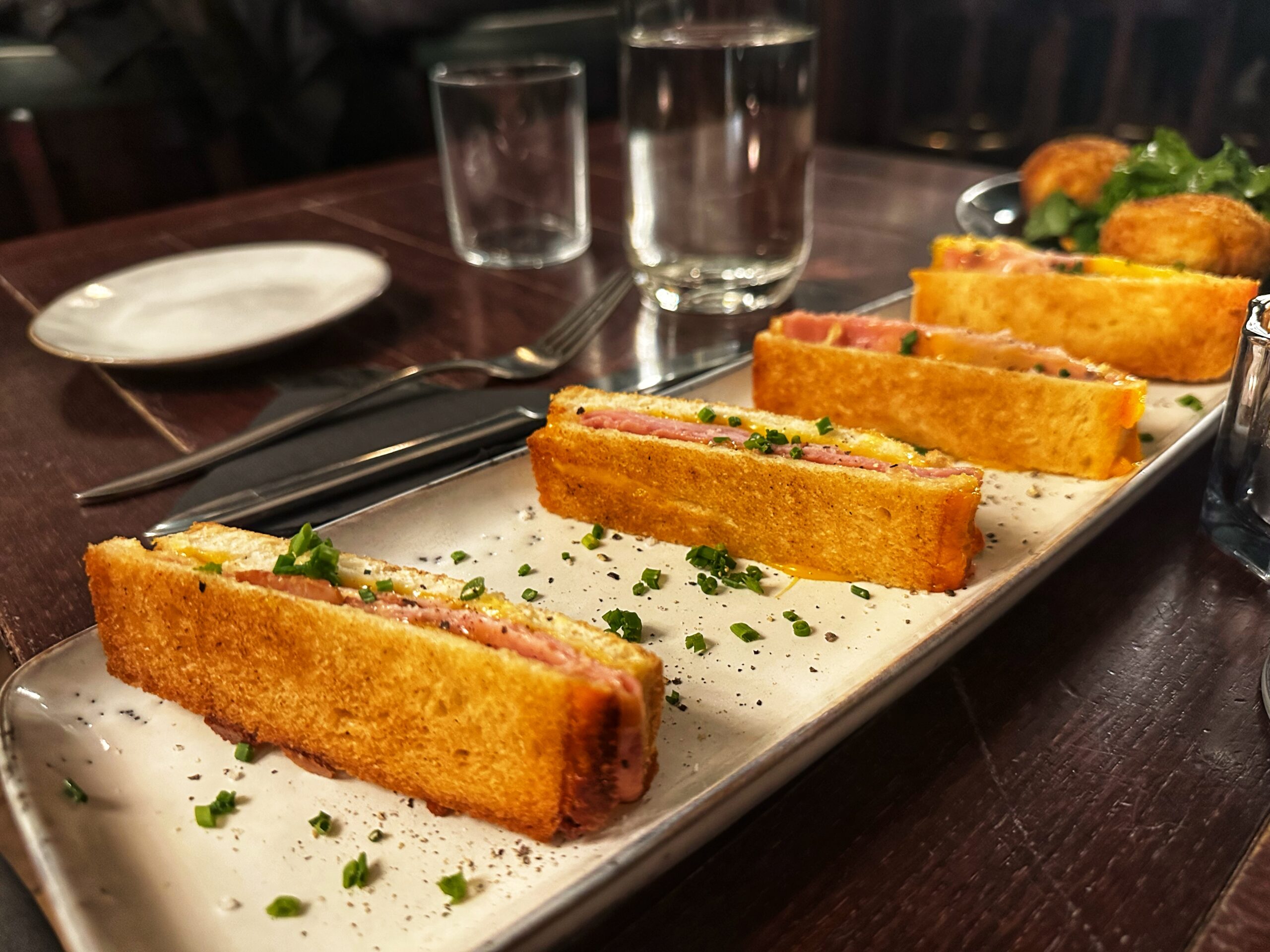 Côté food, on a partagé des croquettes de chorizo, un croque jeune homme et une petite planche de fromages. Les fromages sont sélectionnés avec le même soin que les vins. Chaque bouchée était une découverte.
