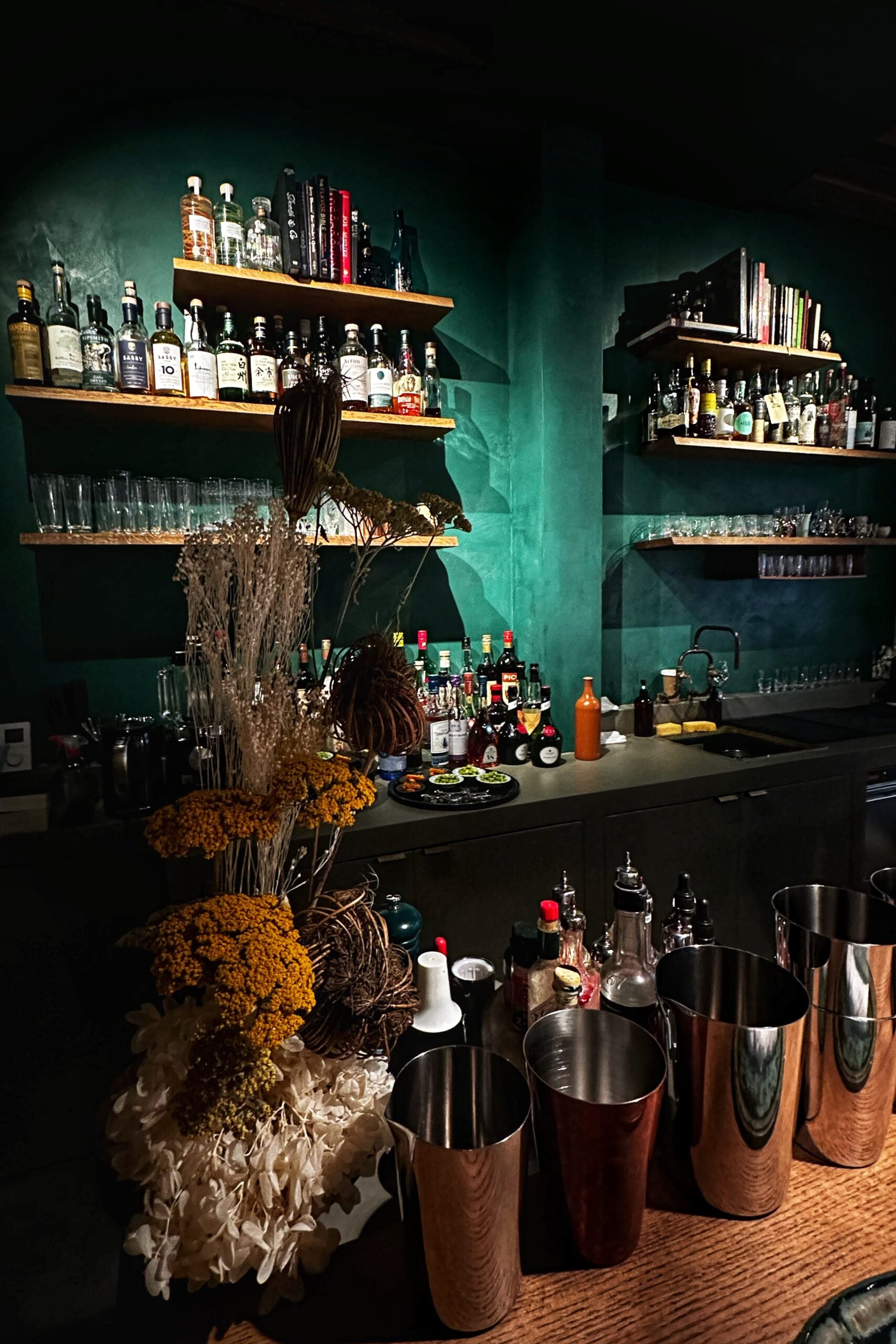 J’ai pu tester leur fameux cocktail « High » et l’Emerald Splash (umeshu, Chartreuse verte, tonic), tous deux d’un équilibre parfait qui justifie la réputation du lieu. L’Emerald Splash révèle des notes fraîches et herbacées particulièrement réussies, tandis que le High démontre toute la maîtrise technique de Frédéric.
